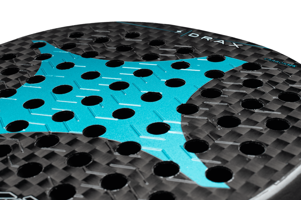 - To lag 12K karbon i rackhodet. Dette stoffet er mer fleksibelt enn 3K karbon. Dette blir oversatt til en mykere følelse som gir god ballfrigjøring, selv om Drax -racketen blir stivnet ved bruk av to lag av dette karbonet som gir ekstra kraft og kontroll.